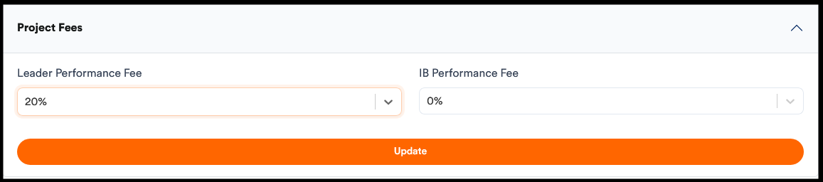 - Isi dan lengkapi formulir Project Fees lalu klik Update. (Contoh gambar di bawah ini)